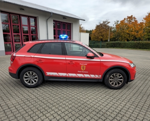 Der Kommandowagen dient vorwiegend der Anfahrt des Stadtbrandinspektors. Neben Funk ist das Fahrzeug mit einer minimalen feuerwehrtechnischen Ausrüstung bestückt.